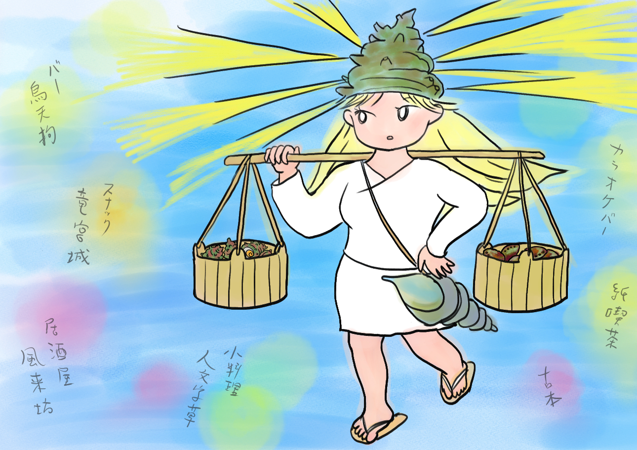 「サザエ~サザエ、美味しいサザエはいらんかね、アワビ~アワビ、美味しいアワビはいらんかね」